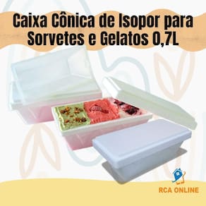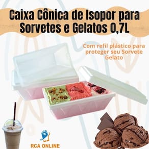 Caixa de Isopor EPS Cônica 0,7 litros para sorvetes e gelatos com refil protetor. No mundo dos sorvetes Gelato, a apresentação e a conservação do produto são tão importantes quanto o sabor. Desenvolvidas com atenção aos detalhes, nossas caixas cônicas possuem um design sofisticado e um refil plástico interno, evitando o contato direto do sorvete com o isopor. Esse cuidado especial reflete a alta qualidade do seu produto, valorizando-o e garantindo que o sabor e a textura se mantenham perfeitos até o momento do consumo.