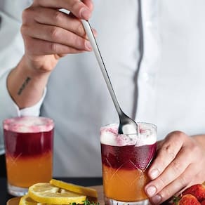 As colheres para coquetéis da Tramontina são colheres longas e finas, com o cabo liso. Feitas para facilitar a mistura dos ingredientes dos drinks de maneira suave, sem quebrar ou criar espuma excessiva em bebidas mais delicadas. Além disso, sua forma torna o manuseio dos utensílios mais eficiente e permite que o bartender ou quem estiver preparando os drinks mexa sem fazer movimentos bruscos, controlando melhor o movimento de mistura dos líquidos. Estas colheres são bastante versáteis, usadas para mexer drinks em copos térmicos, copos de mistura, copo de vidro longo ou um mixing glass. O cabo liso das colheres facilita o controle da quantidade e dos movimentos, possibilitando usá-las para criar camadas em coquetéis de diferentes densidades.