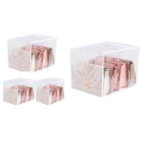 4 quatro colmeia organizadora gaveta bolsa multiuso 4 nichos 40x30x30 Transparente com viés branco Usar colmeias é a forma mais moderna de organizar os guarda-roupas e closets. A colmeia organizadora de gaveta 40x30x30, com 4 divisórias, é ideal para organizar bolsas, jogo de lençol, toalhas, blusão lã, mantas, dentre outros. São práticas e resitêntes: - a transparência da colmeia facilita a visualização e setorização das peças ; - possui um bom tamanho e são multiuso; - otimizam o espaço; e - facilitam o seu dia a dia. Limpeza: limpar tudo com pano úmido. Não utilizar produtos químico. Excelente também para ser em organização de espaço por personal organizer. Modelo: colmeia organizadora gaveta Material: plástico transparente reforçado e viés em tnt de alta qualidade Divisórias: 4 nichos separadores em cada organizador Medida comprimento x largura x altura : 40x30x30 cm Cada embalagem contém: 1 colmeia organizadora grande Marca: Não Informado