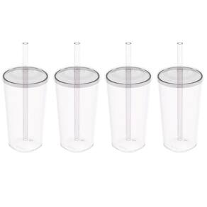 4 Copos com Tampa e Canudo 500ml Crippa Transparente Plástico Água Suco Bebidas
