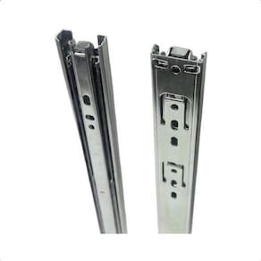 Corrediça Telescópica 45cm Trilho Zincado 2 pares Corrediça telescópica é indicada para gavetas de cozinhas, closets, quartos, banheiros, lavanderias, prateleiras retráteis/extensíveis, bases de teclado e mobiliário em geral. Especificações - kit com: 2 pares de corrediça; - Comprimento: 450mm 18 polegadas ; - Largura: 30mm; - Espessura 100mm; - Para uso geral; - Possibilita abertura total da gaveta com deslizamento suave, preciso e resistente; - Corpo em aço galvanizado; - Deslizamento através de de aço; - Tipo: telescópica; - O par suporta até 20kg; - Peso: 0,516Kg; - : 3 meses. Conteúdo da embalagem: - 01 par de corrediça telescópica de 30x450mm. Marca: Não Informado