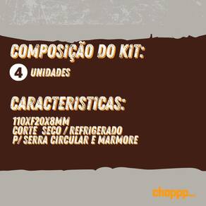 4 Discos Corte Segmentado 110Mm Para Alvenaria Concreto Bosch BUY BUY Leia atentamente a descrio antes de comprar o produto - Produto de alta qualidade e durabilidade. - Produto BUYBUY. - Aconselha-se um profissional para troca do seu disco. ------------------------------ Produto: Disco Corte SEGMENTADO 110XF20X8MM. Diametro do disco: 110mm Espessura: 0,8mm Aplicao: Ferrametas eltricas Multimarcas. Rotao mxima: 13.300 RPM. Furo central: 20 mm Embalagem: 4 peas + Informaes: 2 combinao perfeita para seu equipamento voltar ao trabalho. 3 fcil instalao. 4 caractersticas estveis, alta confiabilidade. 5 Use E.P.I 6 Cor do disco pode ser laranja, amarelo ou verde conforme disponibilidade. ------------------------------ A Os produtos so novos R: Todos os produtos da so novos com do seu fabricante. D Como so realizadas as entregas R: Todas as entregas utilizamos o Martket Place, sistema de logstica do prprio Market Place, envio mais rpido e seguro do Brasil. Entregas em rea rural stios , fazendas , chcaras , estncias , quinta , granjas e outras exceto as que tenham cep prprios , logradouros de difcil acesso ou em reas de risco . Podem no serem realizadas ou chegar depois do prazo previsto. Nesses casos recomendvel ter um outro endereo de entrega no centro da cidade do cep informado. R: Sim, desde que more perto de nossa loja fsica, localizada em So Paulo Capital. F Os produtos possuem R: Todos produtos possuem direto com o seu fabricante de no mnimo 3 meses de acordo com a lei. Esse prazo estar no anncio. G Qual a marca desse produto R:este produto de uma pea vendida com a marca BUYBUY. A mesma no se enquadra e se configura a um produto de outra marca ou fabricante que no seja a BUYBUY H -aceitamos troca de dados de faturamento aps compra R: Confira o seu endereo de entrega cadastrado, pois no aceitamos alteraes do mesmo aps a compra. Marca: Não Informado