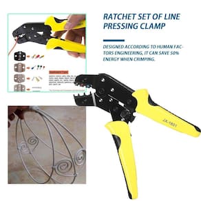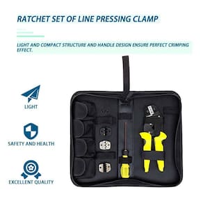 Devido à grande alça estrutura leve e compacta e posição de aderência da alça garante um efeito de crimpagem perfeito. Ferramenta de cremalheira de cabo profissional com mecanismo de catraca auto-ajustável, para fácil operação. Aplicável à maioria dos terminais e conectores isolados sem crimpagem. com 4 terminais intercambiáveis com diferentes faixas de crimpagem. Projetado de acordo com a engenharia de fatores humanos, ele pode economizar 50% de energia ao apertar.