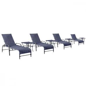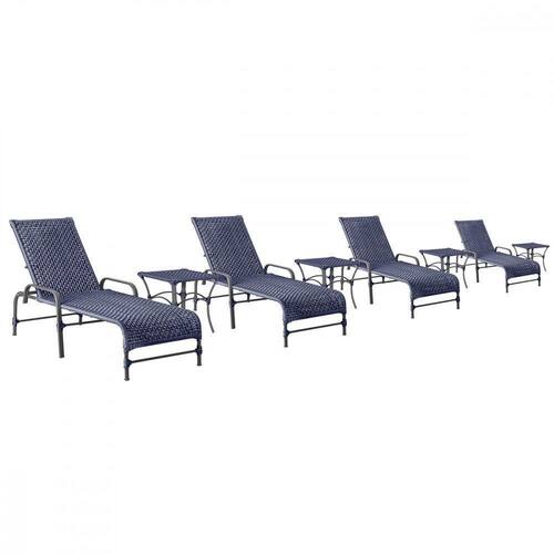 4 Espreguiçadeiras Catar 4 Mesas Garden Corda Náutica Trama Azul
