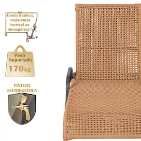 Produto conhecido como: Espreguicadeira reclinavel, Espreguicadeira em aluminio, Espreguicadeira com encosto ajustavel, Espreguicadeira para area externa, Espreguicadeira para piscina, Espreguicadeira resistente ao tempo, Espreguicadeira moderna, Espreguicadeira confortavel, Moveis para area externa, Moveis de aluminio para jardim, Corda nautica para moveis, Espreguicadeira leve e duravel, Design sofisticado para areas externas, Decoracao para varanda e piscina, Espreguicadeira resistente ao sol e chuva