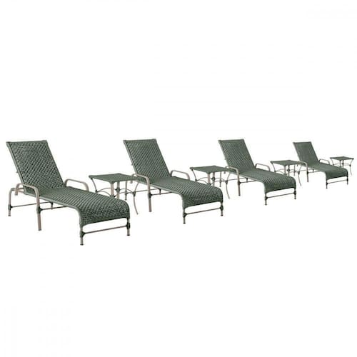 4 Espreguiçadeiras Catar 4 Mesas Garden Corda Náutica Trama Verde