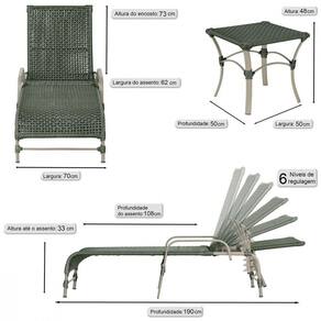 Produto conhecido como: Espreguicadeira reclinavel, Espreguicadeira em aluminio, Espreguicadeira com encosto ajustavel, Espreguicadeira para area externa, Espreguicadeira para piscina, Espreguicadeira resistente ao tempo, Espreguicadeira moderna, Espreguicadeira confortavel, Moveis para area externa, Moveis de aluminio para jardim, Corda nautica para moveis, Espreguicadeira leve e duravel, Design sofisticado para areas externas, Decoracao para varanda e piscina, Espreguicadeira resistente ao sol e chuva