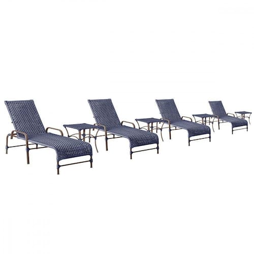 4 Espreguiçadeiras Catar E 4 Mesas Garden Cor Marrom Trama Azul