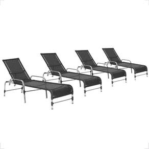 4 Espreguiçadeiras Reclinável Catar, Alumínio Polido E Fibra Preto