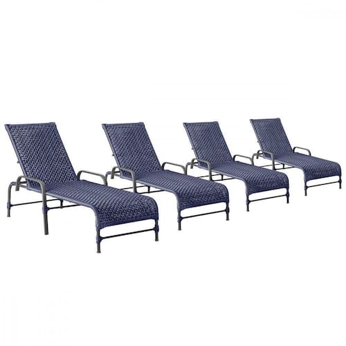 4 Espreguiçadeiras Reclinavel Catar Preto Corda Nautica Azul