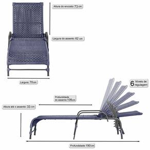 Conteudo da Embalagem: 02 Espreguicadeiras Reclinavel Catar Corda Nautica Trama