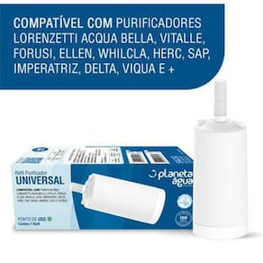Este refil é compatível com os aparelhos Ellen, Leão, Imperatriz, Delta, Herc e outros. 3 Filtros Vela Universais Rosca Longa Bica Móvel - Planeta Aguá Vida Útil: 1500 litros