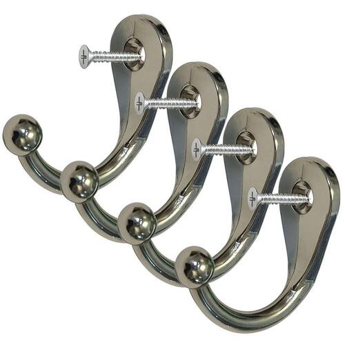 4 Ganchos Cromado Cabide Parede Toalha Vertical 4 Parafusos