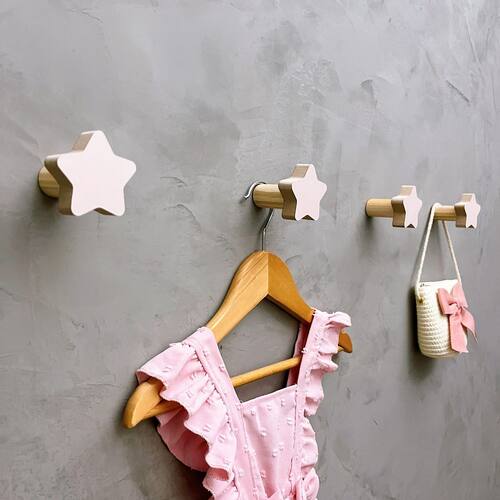 4 Ganchos de parede estrela infantil decoração bebê 4Esbb15c - Cor: Rosa
