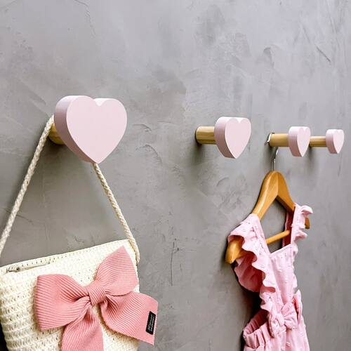 4 Ganchos de parede infantil decoração baby coração 4Cabb15 - Cor: Rosa