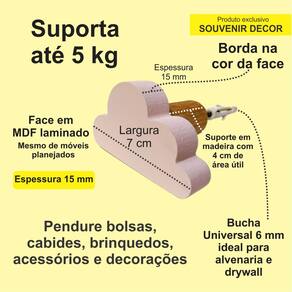 4 Ganchos de parede infantil decoração bebê nuvem 4Nubb15 - Cor: Cinza