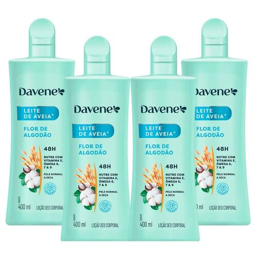 4UN HIDRATANTE CORPORAL LEITE DE AVEIA FLOR DE ALGODÃO 400ML DAVENE CONTÉM: 04UN HIDRATANTE CORPORAL LEITE DE AVEIA FLOR DE ALGODÃO