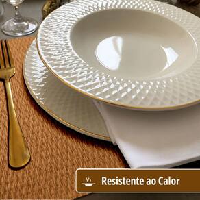 O Jogo Americano Palha proporciona um excelente efeito visual à mesa e combina com diversos tipos de louças e ambientes. Feito em PVC 100% impermeável, ele é muito fácil de limpar e muito prático para o dia a dia.