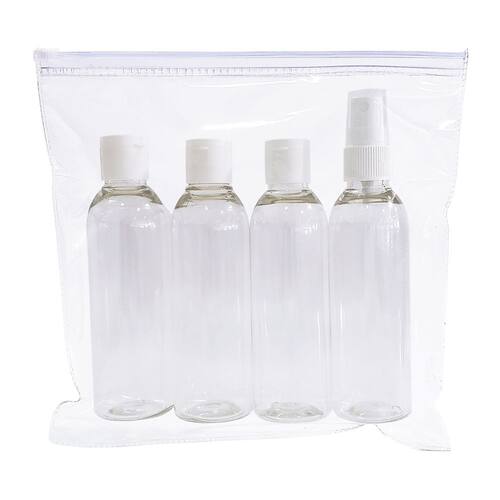 4 KIT VIAGEM COM 4 FRASCOS PARA SHAMPOO, CREME OU SABONETE FTS 100ML Vai viajar? Então esse Kit Viagem é perfeito para você organizar seus produtos de higiene na hora de arrumar as malas. Bonitos e anatômicos, também são ótimos e práticos para levar na bolsa, deixar no carro, no lavabo, banheiros, lavanderia e em pontos estratégicos da casa. Com 3 frascos com tampa Flip Top e 1 Spray, eles são ideais para colocar shampoo, condicionador, sabonete líquido, reparador de pontas, creme hidratante, protetor solar, demaquilante, perfume, álcool, entre outros produtos de higiene e cosméticos. O material é de alta resistência, pode cair no chão que o frasco não quebra. A válvula spray possui tampa de segurança e vaporiza muito bem, em gotículas bem pequenas e por isso recobrem toda a superfície a ser pulverizada. Não vaza e não escorre! CONTÉM: 4 necessaire com 3 frascos flip top e 1 spray. DIMENSÕES - Volume: 100ml - Frasco com Tampa Flip Top, abre e fecha - Diâmetro: 3.8 cm - Altura: 13.3 cm - Frasco Spray com tampa de segurança - Diâmetro: 3.8 cm - Altura: 15.9 cm MATERIAL: PVC | PET | PLÁSTICO Somos fabricantes, por isso o melhor preço para esse produto. Um Produto Idealiza Comércio de Utilidades Ean: 7908430160918