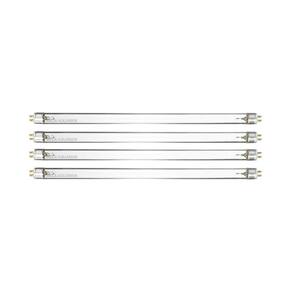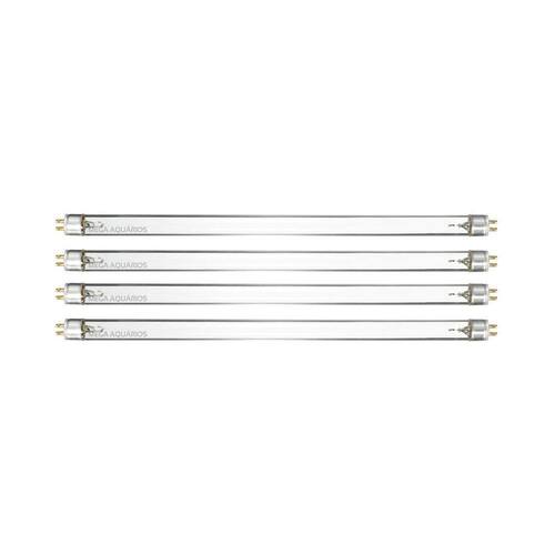 Kit 4 lâmpadas UV tubular fluorescente T5 germicida UV-C 8W para esterilização de ambientes, água e reposição filtro UVComposição do kit: 4 lâmpadas germicida de 8W T5 UV-C.Leia atentamente o anúncio antes da compra.Nossa lâmpada tubular germicida UV foi desenvolvida com tecnologia de ponta para garantir a mais alta qualidade e eficiência em desinfecção, é a escolha ideal para garantir um ambiente livre de germes e uma água cristalina para seu aquário ou lago.Principais Características:Eficácia comprovada na eliminação de bactérias, vírus e outros micro-organismos nocivosA lâmpada UV-C germicida é uma poderosa ferramenta para manter ambientes saudáveisDeixa a água cristalina do lago ou aquário Livre de produtos químicos, a luz UV-C não deixa resíduos tóxicos no ambiente, no ar ou na água tratadaPode ficar ligada 24h por diaTubular / linearTubo de quartzo transparente4 pinos, dois em cada pontaNecessita de reator próprio para lâmpada UVNecessita de equipamento próprio para desinfecção de ambientes ou um filtro UV para esterilização de águaNunca manuseie a lâmpada com ela ligada, não exponha olhos e pele à radiação da lâmpada. Aplicação - Para que serve a lâmpada ultravioleta - UV-C germicida:Peça de reposição para filtro ultravioleta UV de lago ou aquário.Manter a água do aquário ou lago cristalina e livre de micro-organismos que possam prejudicar a saúde dos peixes e plantas.Tratamento de água e esgoto.Desinfecção de ambientes como hospitais, farmácias, restaurantes, academias, transporte público, indústrias alimentícias e outros locais que necessitam manter o ambiente seguro e livre de patógenos.Especificações técnicas:Marca: Mega AquáriosModelo: Lâmpada UV UV-C germicida fluorescente ultravioleta 8WRadiação: Emite radiação UV de onda com um pico de 253.7 nm UV-C Potência: 8WVoltagem: 110V / 220V pode ser ligada nas duas voltagens conforme ligação do reatorTamanho: 30cm pino a pinoDiâmetro: T5Soquete: G5Pinos: 4Formato: tubularMédia de vida útil: 8.000hPeso: 31g.Necessita reator específico para lâmpada fluorescente de 8W.A lâmpada germicida também pode ser conhecida como:Lâmpada UV-C, lâmpada germicida, GL, lâmpada esterilizadora, luz ultravioleta C, luz uv.Como usar a lâmpada UV ultravioleta para esterilizar água: É necessário a utilização de um esterilizador ou filtro UV, nunca coloque a lâmpada ultravioleta UV-C diretamente na água sem um equipamento próprio. A utilização de materiais para vedação como: silicone, Durepox e outros materiais semelhantes não garantem a vedação correta, podendo passar água para os pinos e consequentemente a queima da lâmpada, caracterizando uso indevido e a perda da garantia. Utilize sempre material apropriado como anéis de vedação de borracha.Como descartar a lâmpada UV corretamente:Procure pontos apropriados de coletas específicos para materiais reciclados como lâmpadas e resíduos eletrônicos.Nunca jogue lâmpadas tubulares no lixo comum, pois elas contêm metais pesados e outros materiais perigosos.IMPORTANTEJamais exponha os olhos ou a pele à radiação emitida pela lâmpada UV ultravioleta, sob risco de danos gravíssimos irreversíveis aos olhos além de queimaduras na pele. A utilização de equipamentos de segurança é obrigatória.Obrigado pela visita e boas comprasATENÇÃONossas imagens e textos são registrados e com direito de uso autoral controlado e reservado a essa loja e as lojas parceiras devidamente autorizadas em contrato.
