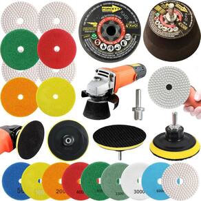 4 Lixas Grão 4 Pol. 100mm Diamantada + 1 Rebolo Cônico 45 Graus + 1 Disco Prato + 1 Pino M14 KaQi GRÃO: g50 g400 g800 g3000 Kit 4 Lixas Diamantadas Disco 4 Polegadas 100mm KaQi + 1 Rebolo Grão 120 Copo Cônico 45 Graus 4 Polegadas M14 Forcety. + 1 Suporte Prato Disco 100mm M14 KaQi + 1 Pino Adaptador Multiuso Rosca Universal M14 KaQi. Para Desbastes, Polimentos, Acabamentos, Boleamentos, Lixamentos a Seco e Úmido. Para profissionais e entusiastas de reformas e construção. Transforme o acabamento das suas superfícies com o Kit 4 Lixas Grão 4 Pol. 100mm Diamantada + 1 Rebolo Cônico 45 Graus + 1 Disco Prato + 1 Pino M14 Desenvolvido para oferecer o melhor polimento e acabamento, é perfeito para quem busca resultados profissionais, tanto em pedras como granitos, mármores, cerâmicas, quanto ardósia, calcário, dekton, quartzo, porcelanato, pedra projetada, concreto, nanoglass, super nano, vidro e muito mais. Seu lixamento pode ser a seco e a úmido, o que proporciona um processo mais rápido, sem gerar calor excessivo. Assim, é possível garantir um resultado sem manchas ou falhas, e ainda favorece um efeito brilho d'água incrível O Rebolo Copo Cônico 10x5cm Grão 120 Forcety é ideal para desbastes, retificações, boleamentos e acabamentos. Projetado para oferecer eficiência, durabilidade, confiabilidade e resultados excepcionais, é perfeito para profissionais e entusiastas de reformas e construções. Não à toa, é o rebolo número 1 das marmorarias, azulejistas e oficinas de todo Brasil O Disco 100mm e o pino adaptador M14 podem ser utilizados em conjunto com as lixas e com o rebolo. Com sistema de gruda e desgruda fácil, podem utilizadas em lixadeiras, esmerilhadeiras, politrizes, furadeiras, parafusadeiras. Permite, assim, ampliar a gama de usos do kit. Principais características: 1. Durabilidade extra, alta resistência ao desgaste, longa vida útil e desempenho, além de excelente performance em diversos tipos de materiais. 2. Acabamento impecável no desbaste e polimento de superfícies de pedra, mármore, calcário, ardósia, porcelanato e outros, sem deixar manchas ou marcas indesejadas. Pode ser trabalhada em superfícies claras ou escuras. Oferece uma remoção eficiente de material e um acabamento uniforme. 3. Versatilidade no uso com diversas ferramentas, já que pode ser Utilizado em esmerilhadeiras, lixadeiras, politrizes e furadeiras elétricas. 4. Eficiência de montagem, uma vez que possui sistema de fixação rápido. Basta encostar a lixa no suporte do disco para grudar, e, para remover, é só puxar na direção contrária. Conteúdo da embalagem: 4 Lixas DÁgua 4 Pol. 100mm Disco Diamantado KaQi GRÃO. + 1 Rebolo Grão 120 Copo Cônico 45 Graus 4 Polegadas M14 Forcety. + 1 Suporte Prato Disco 100mm M14 KaQi + 1 Pino Adaptador Multiuso Rosca Universal M14 KaQi. Especificações Lixas: Diâmetro: 100mm 4 Polegadas . Furo central: 1,3cm diâmetro. Espessura 1 unidade: 0,4cm. Maleabilidade: flexível. Lixamentos: seco e úmido. RPM: ideal entre 3000 a 5000 rotações por minuto. Material da lixa: diamante sintético industrial e resina premium. Costado: tipo vellcro. Fácil de fixar e remover. Especificações Rebolo: Trabalho: a seco ou refrigerado com água. Diâmetro: 4 Polegadas 100mm 10,16cm x altura 5,08cm. Velocidade: 9023RPM. Rosca: M14. Material: Carbeto de Silício SiC com diamantes. Feito para ser conforme norma ABNT NBR 15230. Especificações Prato Suporte: Diâmetro do disco: 100mm 4 Polegadas . Modelo do disco: M14 com superfície tipo vellcro. RPM: até 12000. Rosca: padrão M14 14mm . Especificações Pino Adaptador M14: Para Furadeira Parafusadeiras, Politrizes, Lixadeiras e Esmerilhadeiras. Fixa em discos pratos M14 para uso com lixas, boinas, espumas de polir, entre outros acessórios. Rosca: M14 14mm . Pino largura: 8mm. Altura total: 4,4cm.