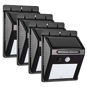 Kit com 4 Luminárias solar com detetor de movimento e acendimento automático acionado pela intensidade de luz ambiente. Com autonomia de até 12 horas, grande intensidade de luz é destinada a áreas externas, já que é a prova d´água. Economia, praticidade e segurança em um mesmo produto. Material: Plástico Cor: Preto 25 Leds Fonte de energia: Solar Painel Solar: 55W Bateria Li-ion: 3,7V 1200mAH Sensor Noturno: 10 Lux Sensor de movimento ângulo: 120º Distância do sensor: 5 Metros : On/Off Tipo de instalação: Fixado Na Parede Inclui 1 Luminária Solar 1 Parafuso 1 Bucha 1 Manual Tamanho do produto: 12,5x10x5cm Tamanho da embalagem: 17x10x6cm Peso: 0,175 kg Código do produto: 4XGT511 Marca: Não Informado