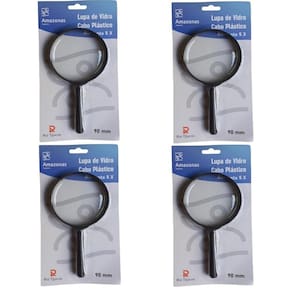 Comprimento Total da Lupa: 17,5 cm Poder de ampliação: 5X Conteúdo da embalagem: 04 Lupas de Mão