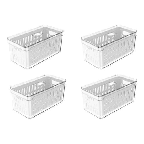 4 Organizadores De Geladeira 5l Com Escorredor Fresh Clear SELLERSKU: F6027 Cor: Transparente F6027