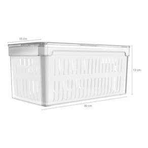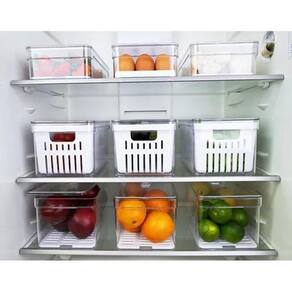 Dimensões De Cada Organizador: 30cm C x 15cm L x 13cm A Capacidade De Cada Organizador: 5 Litros. Conteúdo: 03 Organizadores de geladeira com cestos de drenagem.