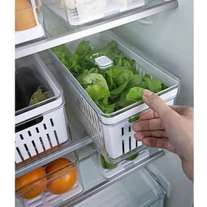 O Jogo de 4 Organizadores de Geladeira 5 litros com Cesto Escorredor da linha Clear Fresh é ideal para aproveitar melhor os espaços da sua geladeira e manter os alimentos refrigerados e bem conservados, garantindo refeições frescas e o bem estar de sua família. As caixas plásticas para legumes, frutas e saladas possuem diversas funções para trazer mais frescor à geladeira, tais como: o sistema de ventilação e umidade controlada pelo respiradouro e sua cesta de drenagem que evita que os alimentos fiquem molhados permitindo o fluxo de ar e evitando o ressecamento e deterioração precoce dos alimentos. Empilhe, encaixe e crie diversas composições. Organizadores De Geladeira Com Respiradouro E Cesto Escorredor Caixas De Armazenamento Para Legumes Saladas E Frutas Conjunto Linha Clear Fresh