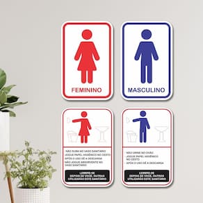 Kit 4 Placas Sinalização Banheiro Feminino Masculino Regras 20x13cm