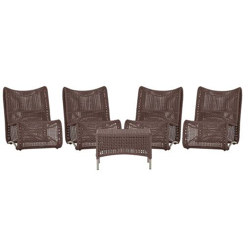4 Poltrona e Mesa Texas em Alumínio Trama - Marrom Escuro
