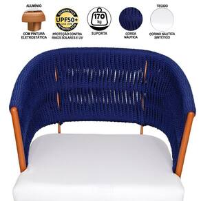 4 Poltronas California em Alumínio, Corda Náutica e Assento e Mesa com Tampo em Madeira Cumaru Trama