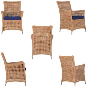 A corda nautica adiciona um toque de rusticidade moderna, enquanto o estofado impermeavel garante que sua poltrona esteja sempre impecavel, mesmo apos uma chuva inesperada ou um acidente com liquidos.