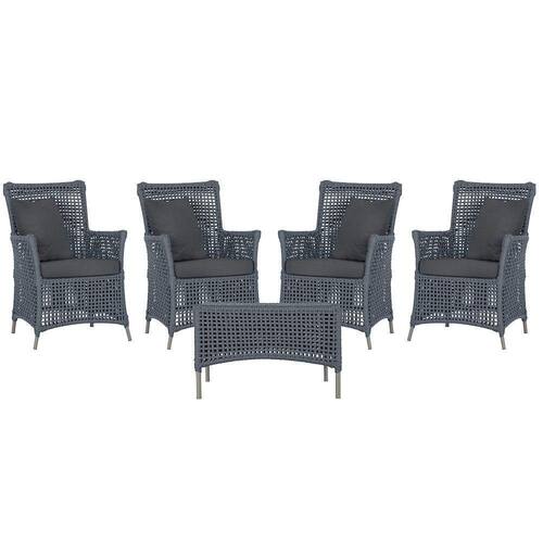 4 Poltronas E 1 Mesa Igapó Alumínio Fendi Corda Náutica E11 Prata