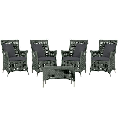 4 Poltronas E 1 Mesa Igapó Alumínio Fendi Corda Náutica E11 Verde