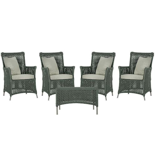 4 Poltronas E 1 Mesa Igapó Alumínio Fendi Corda Náutica E3 Verde