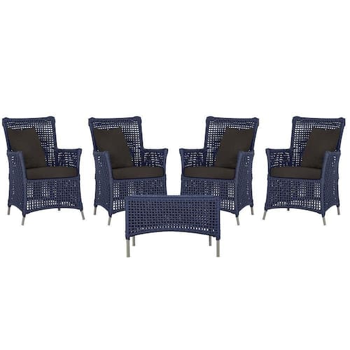 4 Poltronas E 1 Mesa Igapó Alumínio Fendi Corda Náutica E9 Azul
