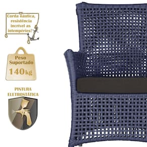 Produto conhecido como: Poltrona Igapo, Poltrona de aluminio, Corda nautica, Estofado impermeavel, Moveis de exterior, Poltrona resistente a agua, Design moderno em poltrona, Poltrona para area externa, Poltrona de jardim, Moveis para varanda, Poltrona duravel, Poltrona de alta qualidade, Conforto em poltrona, Poltrona elegante.