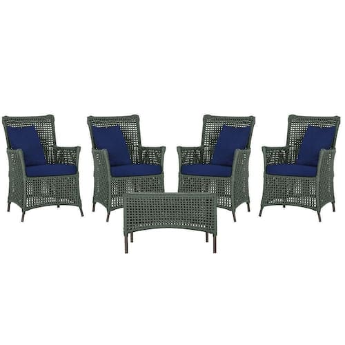 4 Poltronas E 1 Mesa Igapó Alumínio Marrom Corda Náutica E10 Verde