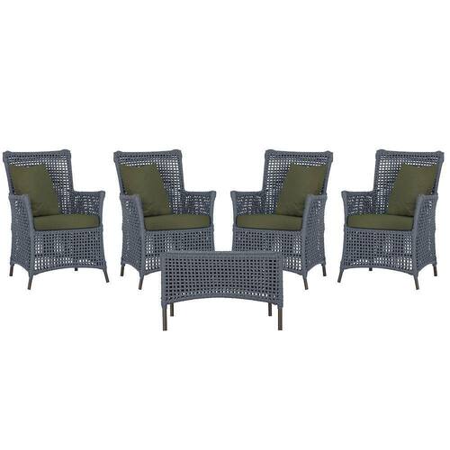 4 Poltronas E 1 Mesa Igapó Alumínio Marrom Corda Náutica E13 Prata