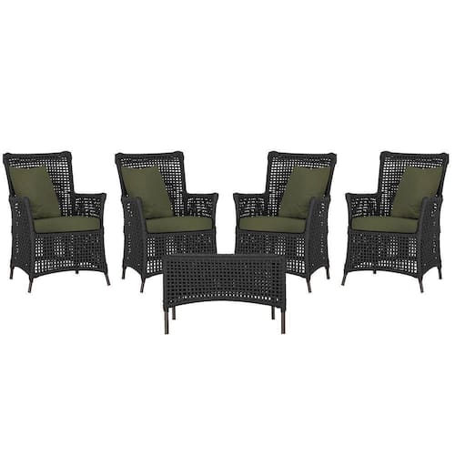 4 Poltronas E 1 Mesa Igapó Alumínio Marrom Corda Náutica E13 Preto