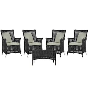 4 Poltronas E 1 Mesa Igapó Alumínio Marrom Corda Náutica E3 Preto