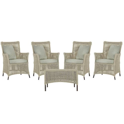 4 Poltronas E 1 Mesa Igapó Alumínio Marrom Corda Náutica E3 Rami