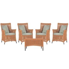 4 Poltronas E 1 Mesa Igapó Alumínio Marrom Corda Náutica E3 Terra Cota