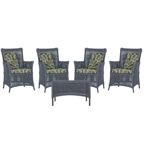 4 Poltronas E 1 Mesa Igapó Alumínio Marrom Corda Náutica E5 Prata