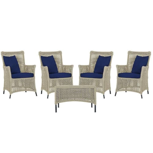 4 Poltronas E 1 Mesa Igapó Alumínio Preta Corda Náutica E10 Rami - Preto