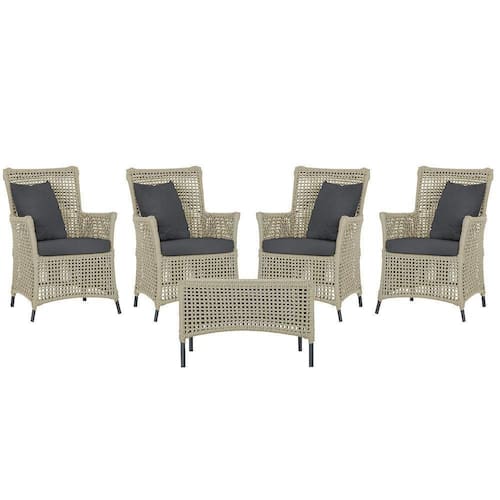 4 Poltronas E 1 Mesa Igapó Alumínio Preta Corda Náutica E11 Rami