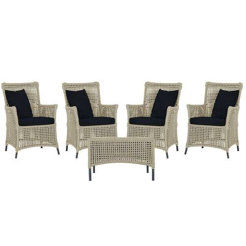 Itens Inclusos: 04 Poltronas e 01 Mesa Igapo em Aluminio Pintura Preta Corda Nautica Estofado 12