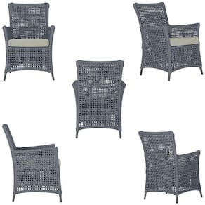 4 Poltronas E 1 Mesa Igapó Alumínio Preta Corda Náutica E3 Prata